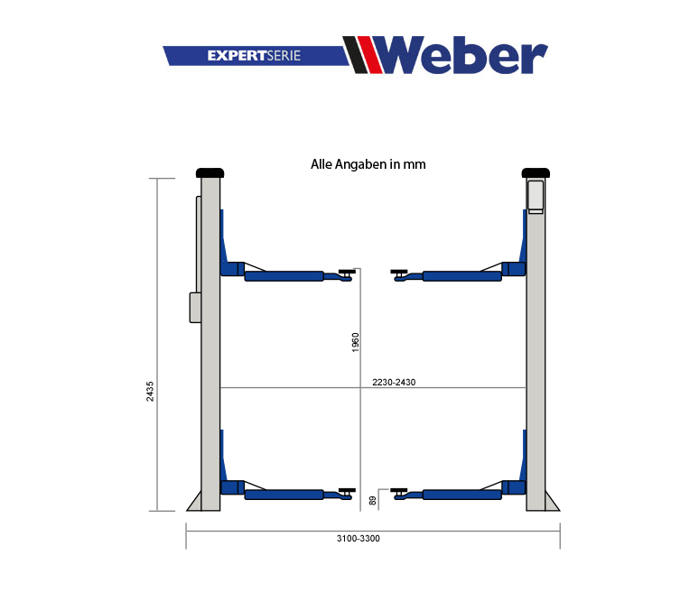 Startseite » Hebebühnen » 2-Säulenhebebühnen » mechanische Hebebühnen » 2 Säulen "Spindel" Hebebühne Weber Expert Serie C-2.32-AS
