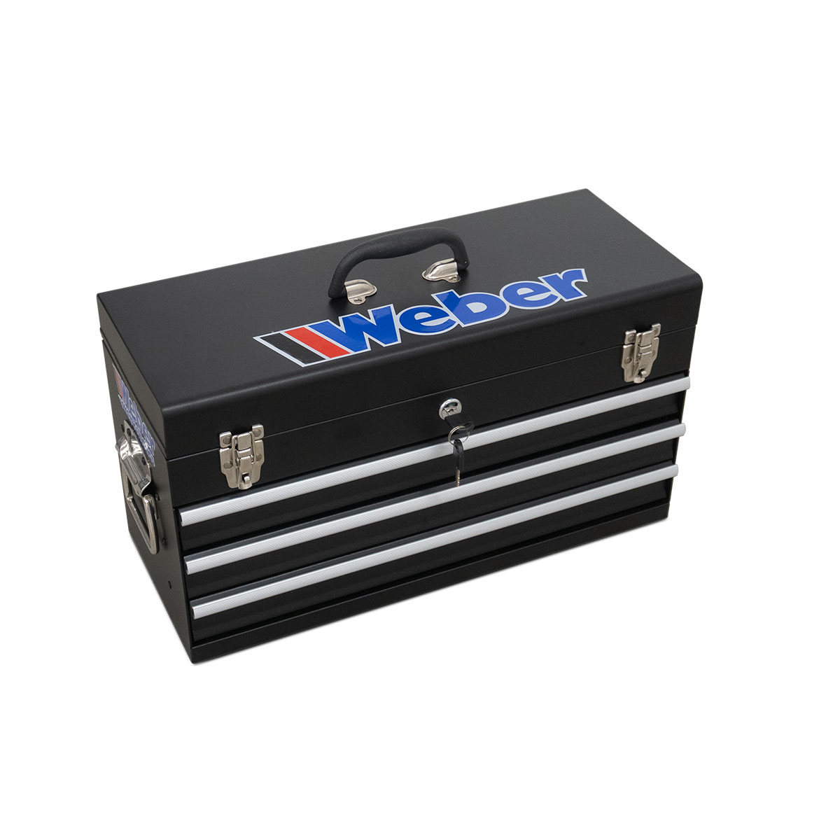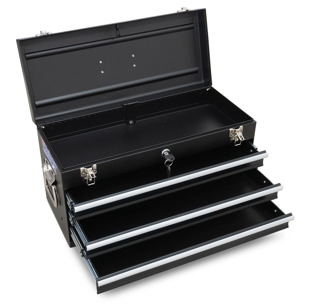 Leere Werkzeugkiste mit 3 Schubladen und Klappdeckel