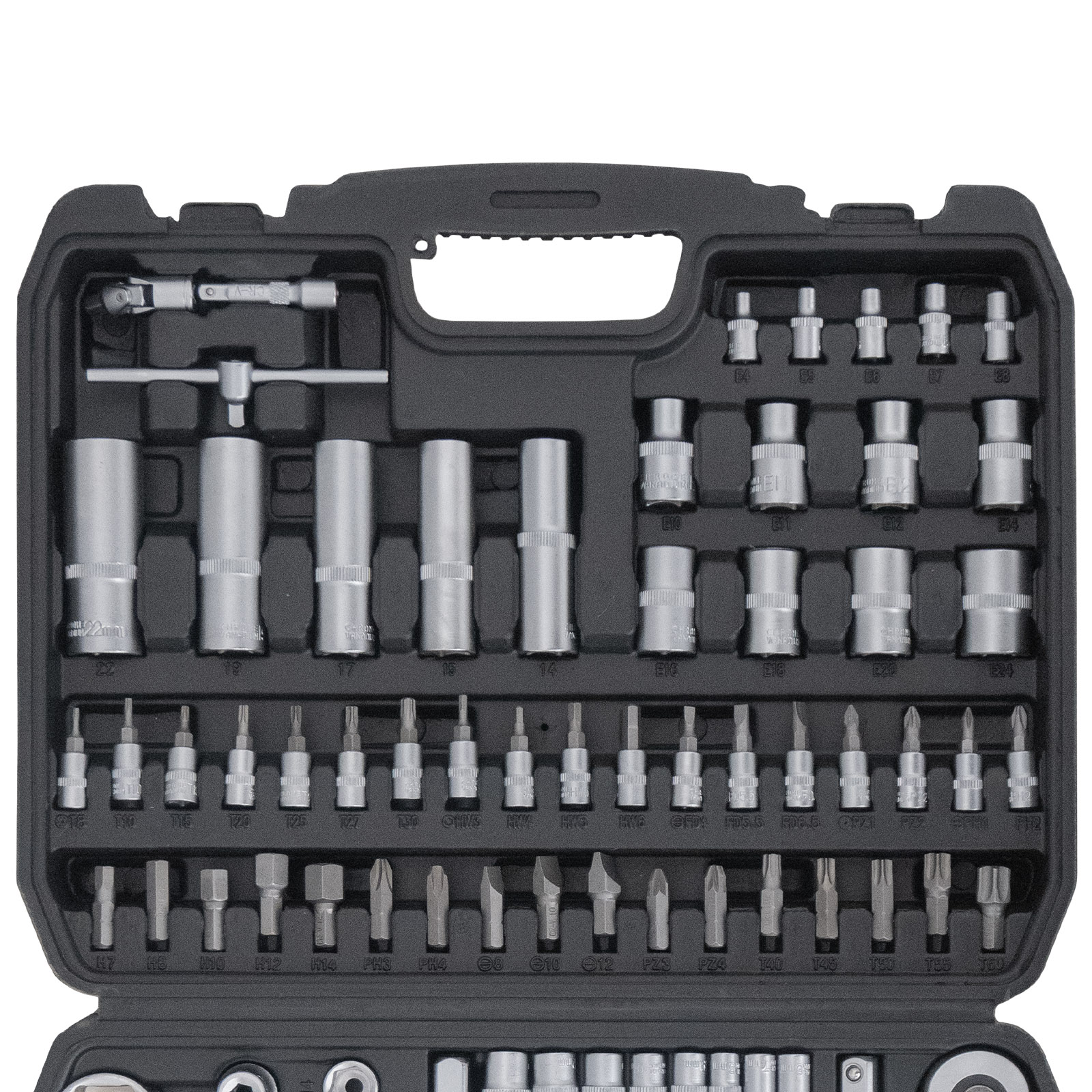 - 17-teiliges Stecknuss Set 1/2": 10, 11, 12, 13, 14, 15, 16, 17, 18, 19, 20, 21, 22, 24, 27, 30, 32 mm